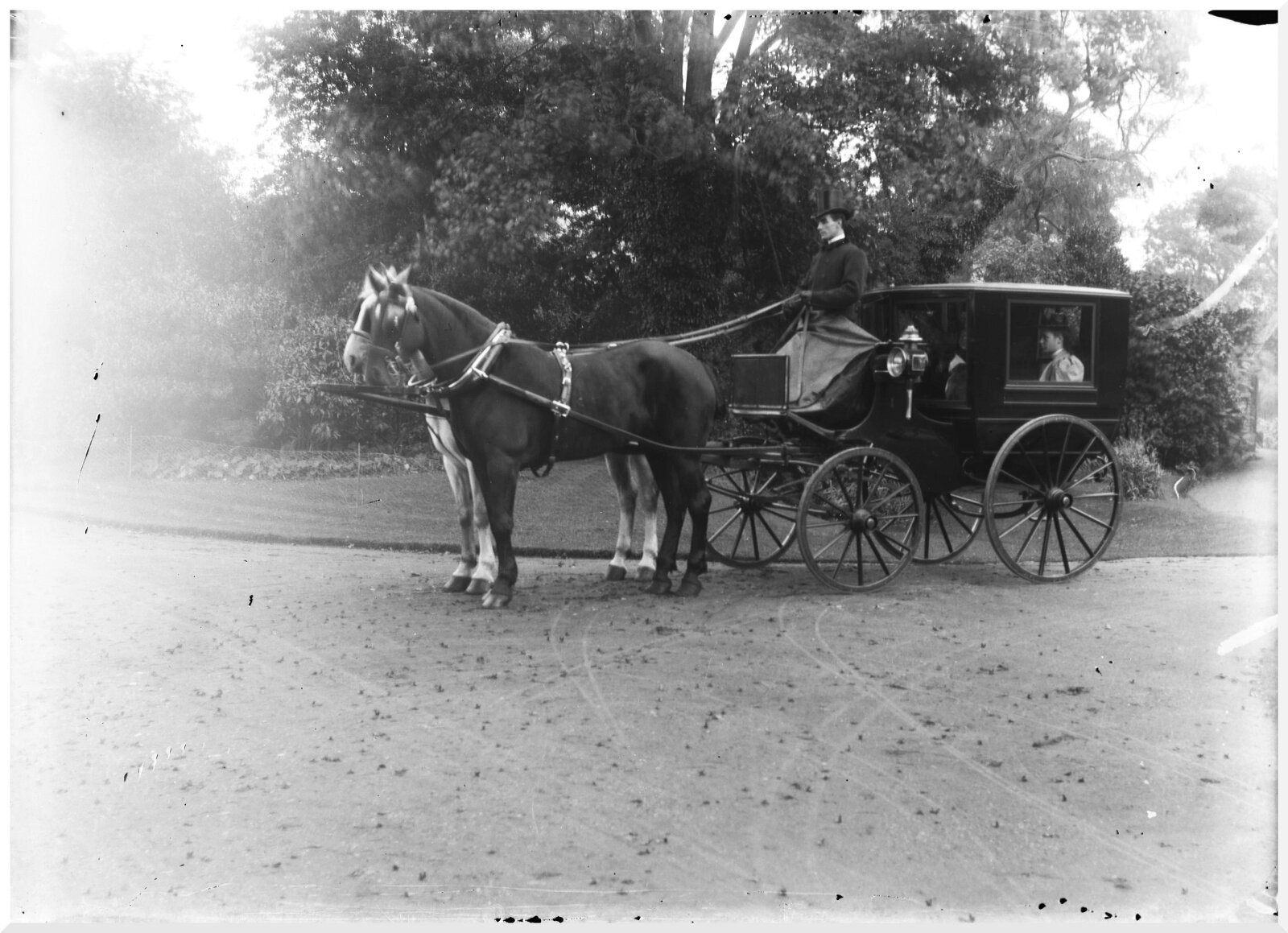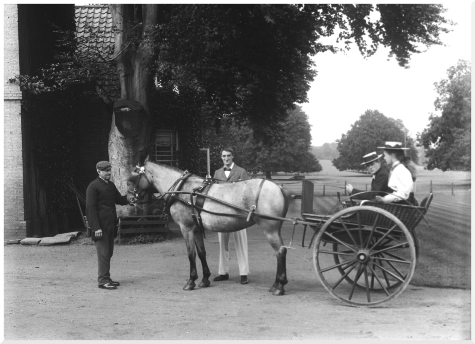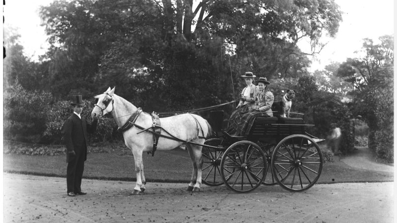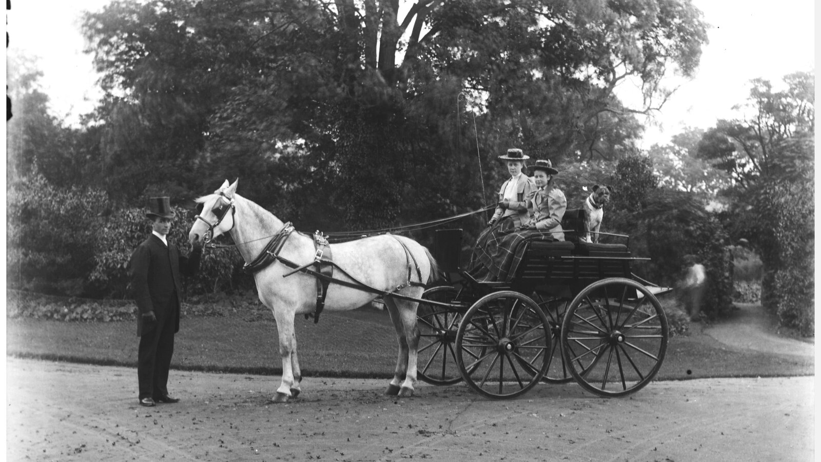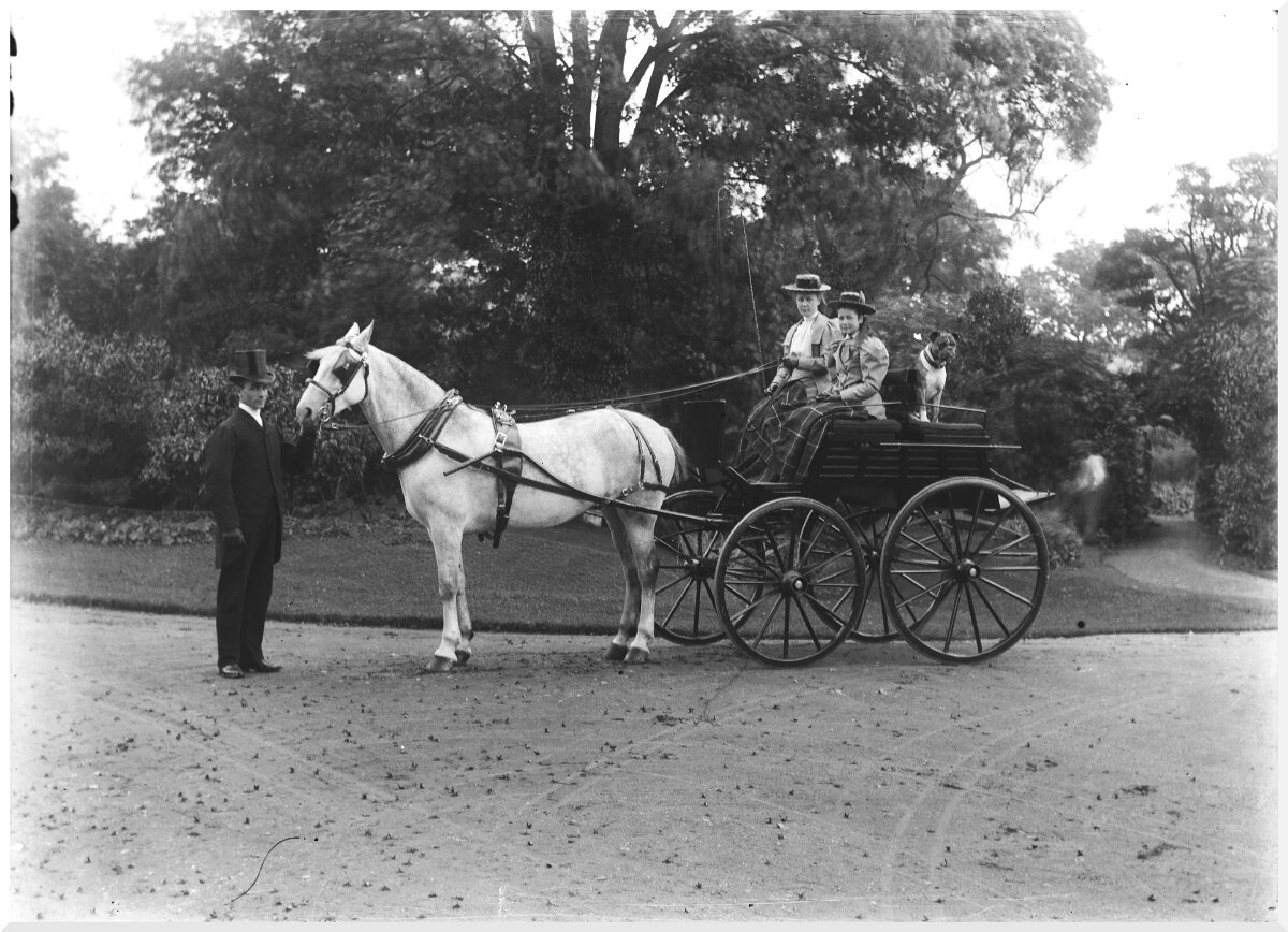 2 girls in governess cart