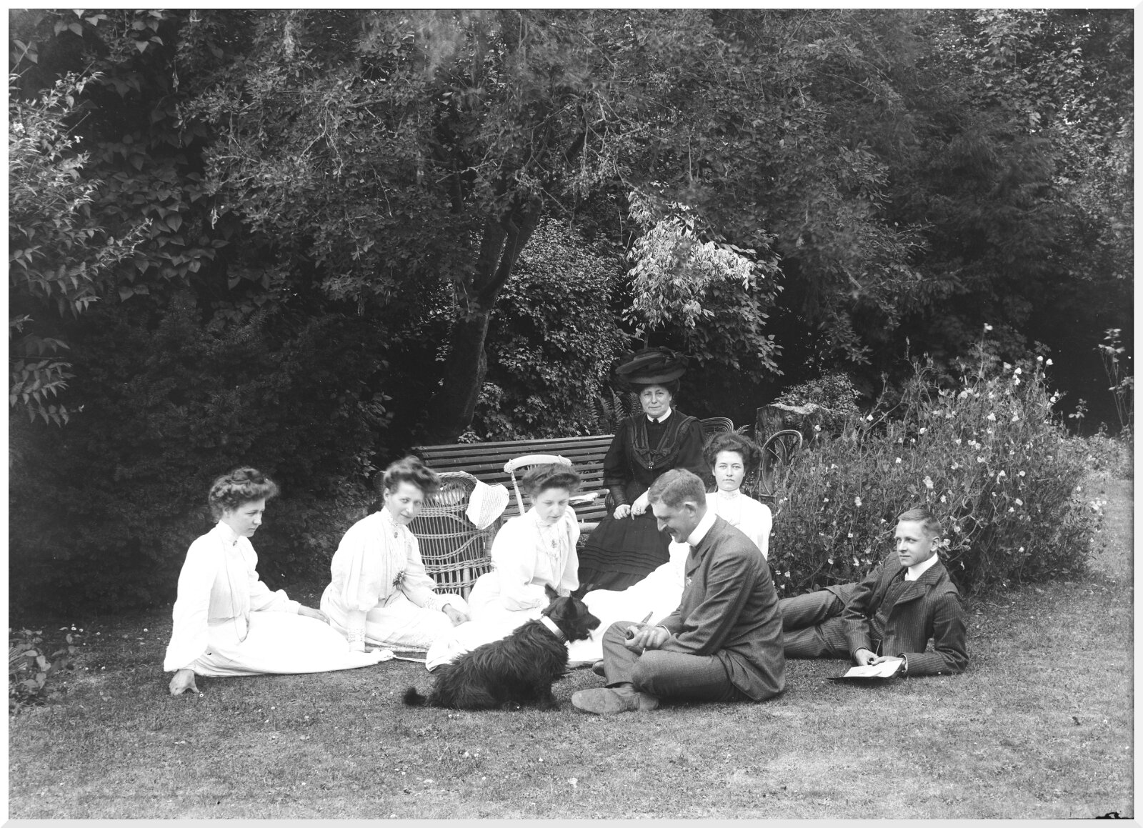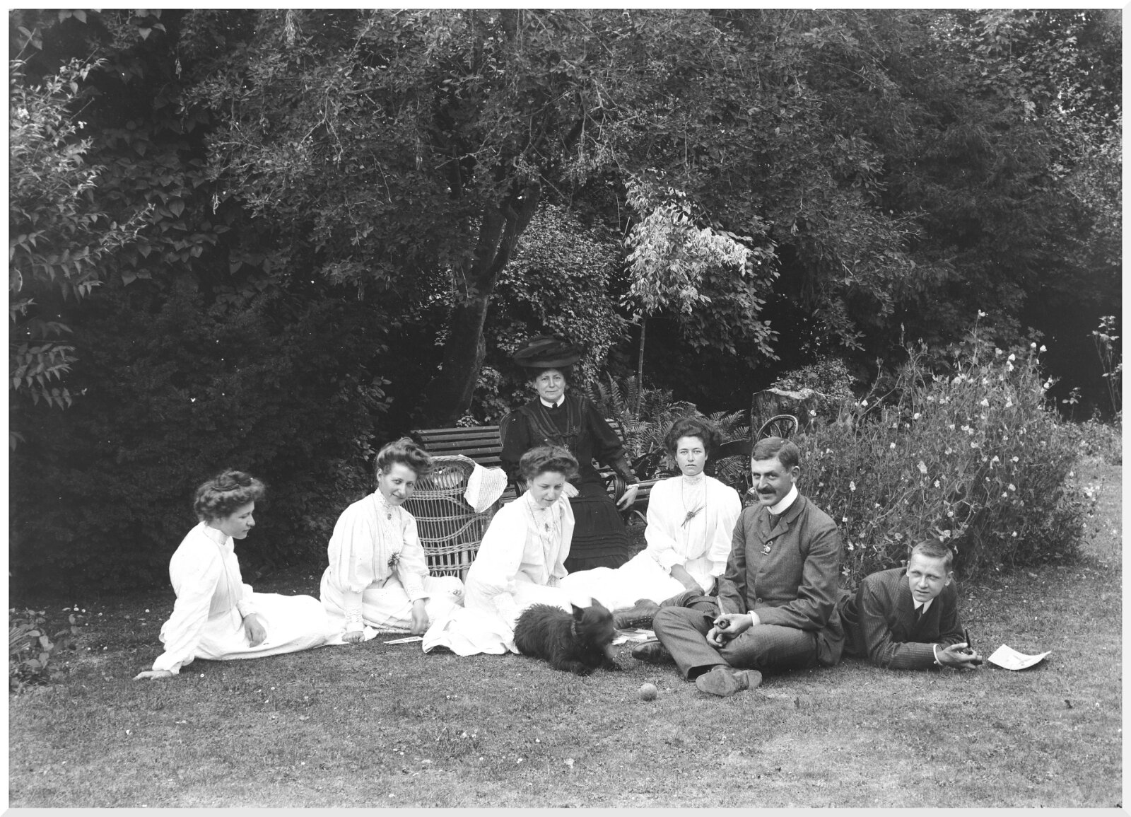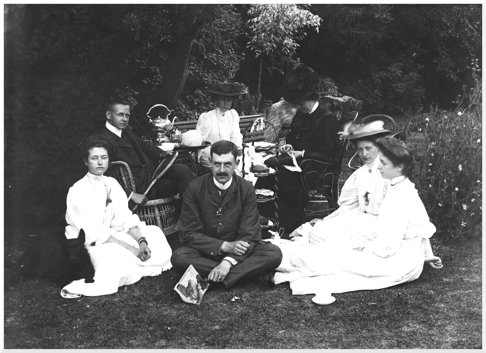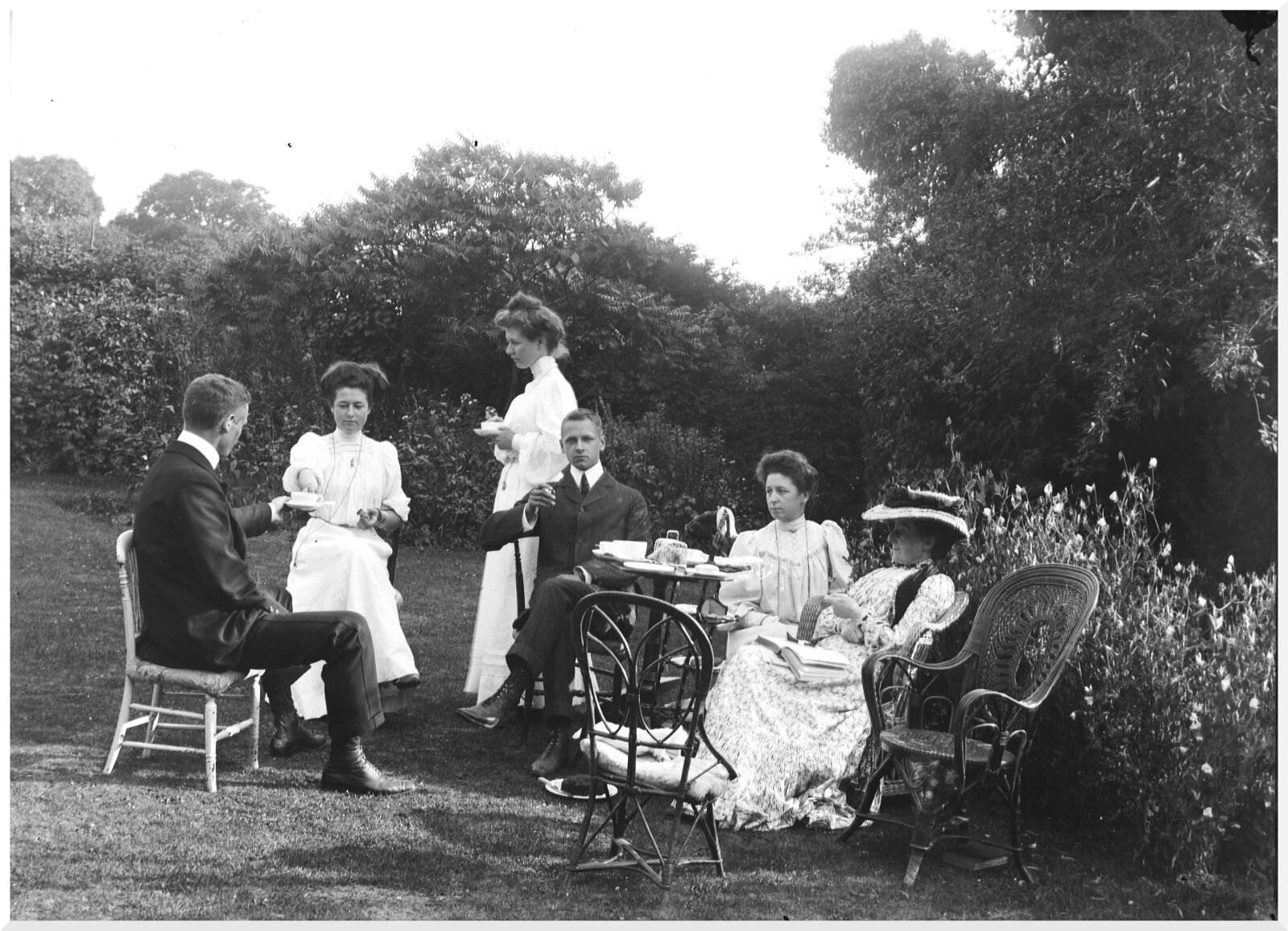 Ladies and gents having tea on lawn