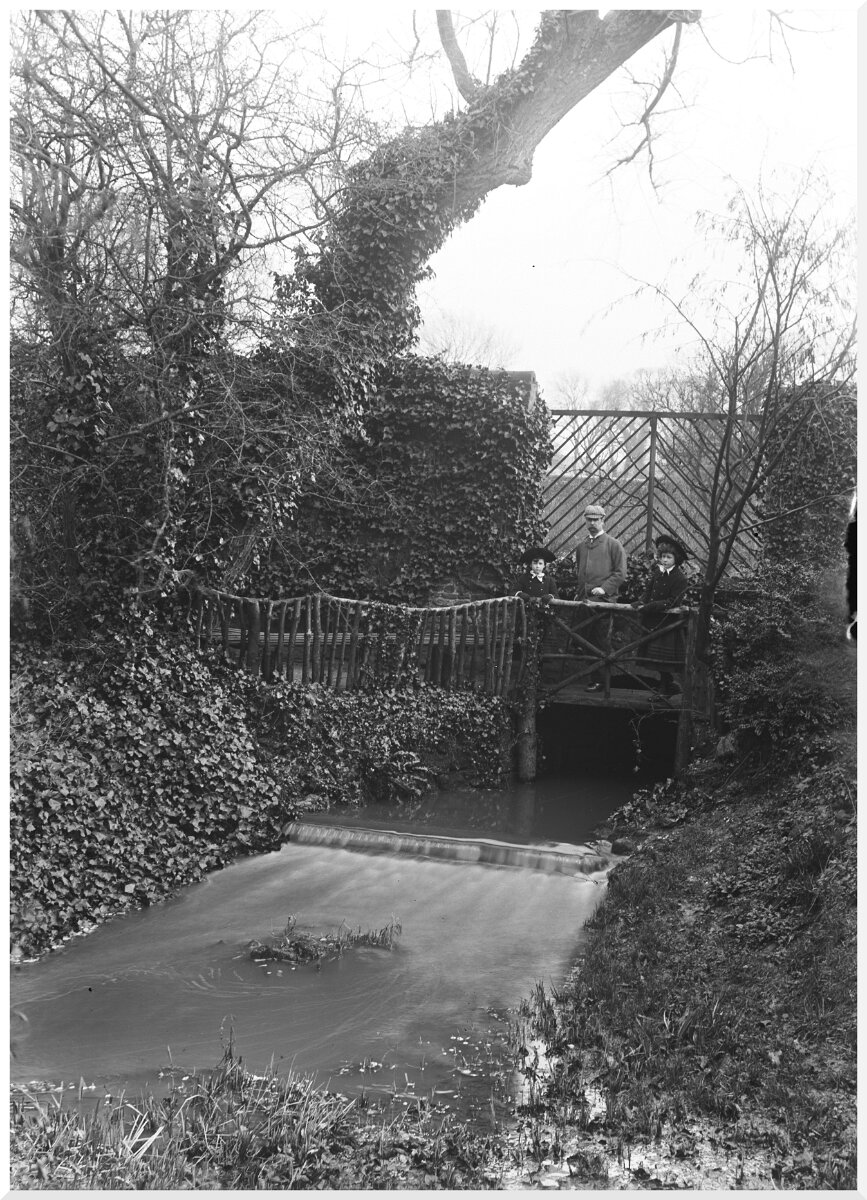 Father, Gertie and Nona on waterfall bridge, from drive