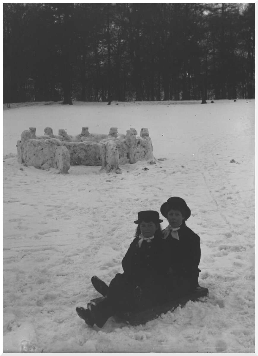 Gertie & Nona on one small toboggan