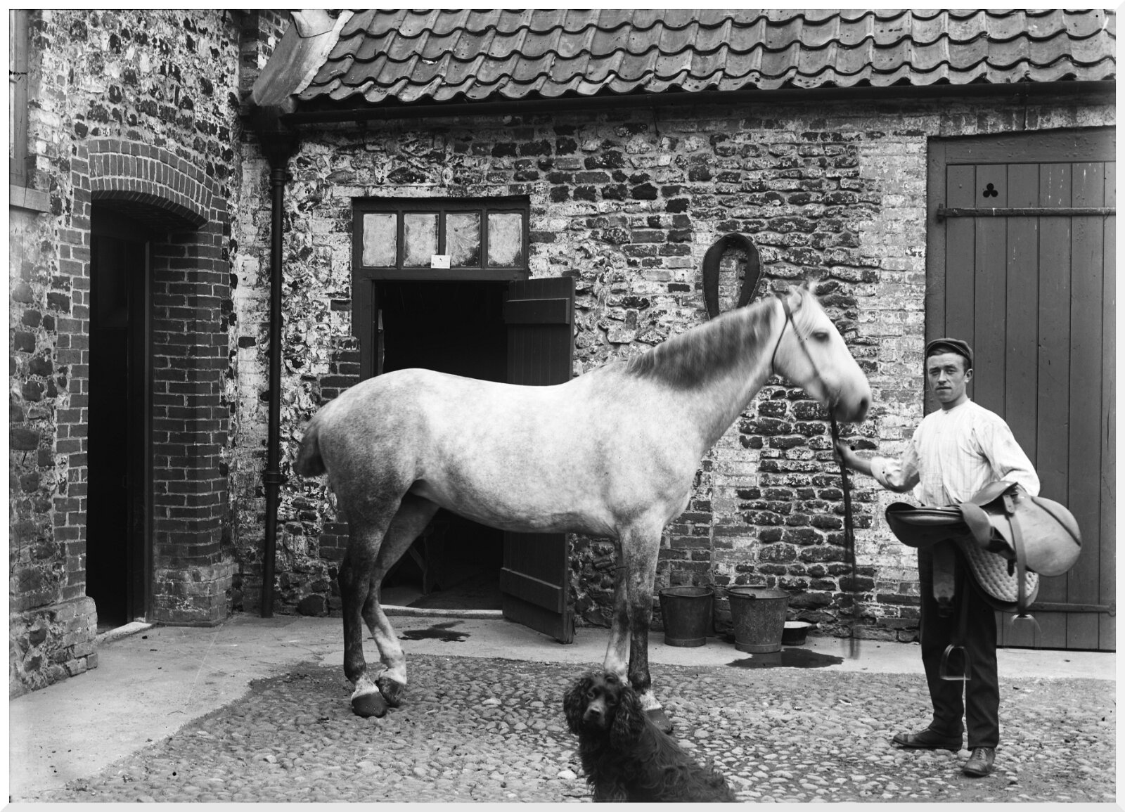 William holding gray mare