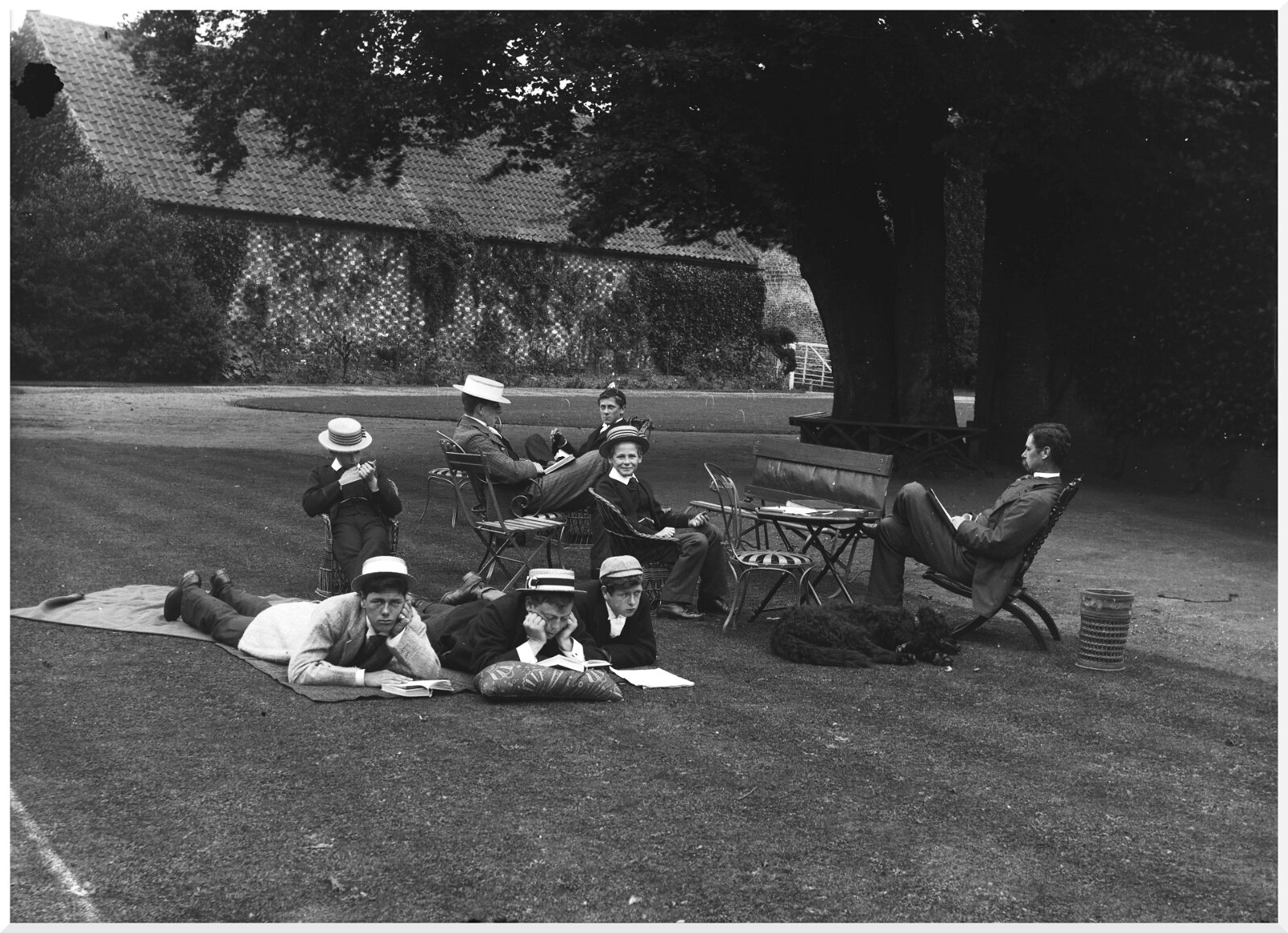 Filter 1 Family on lawn 2 Family group on lawn 3 Trophies on table 4 Trophies on bookcase 5 (probbaly not) John 6 Gilbert in wild garden 7 Father in window 8 Family studying on lawn 9 Family phots. copies from Vandyke Box 5Box 5b