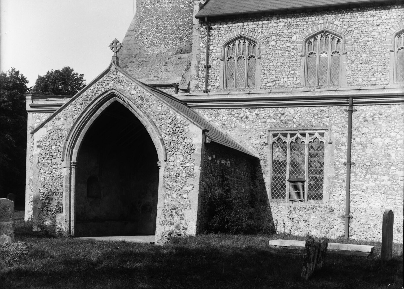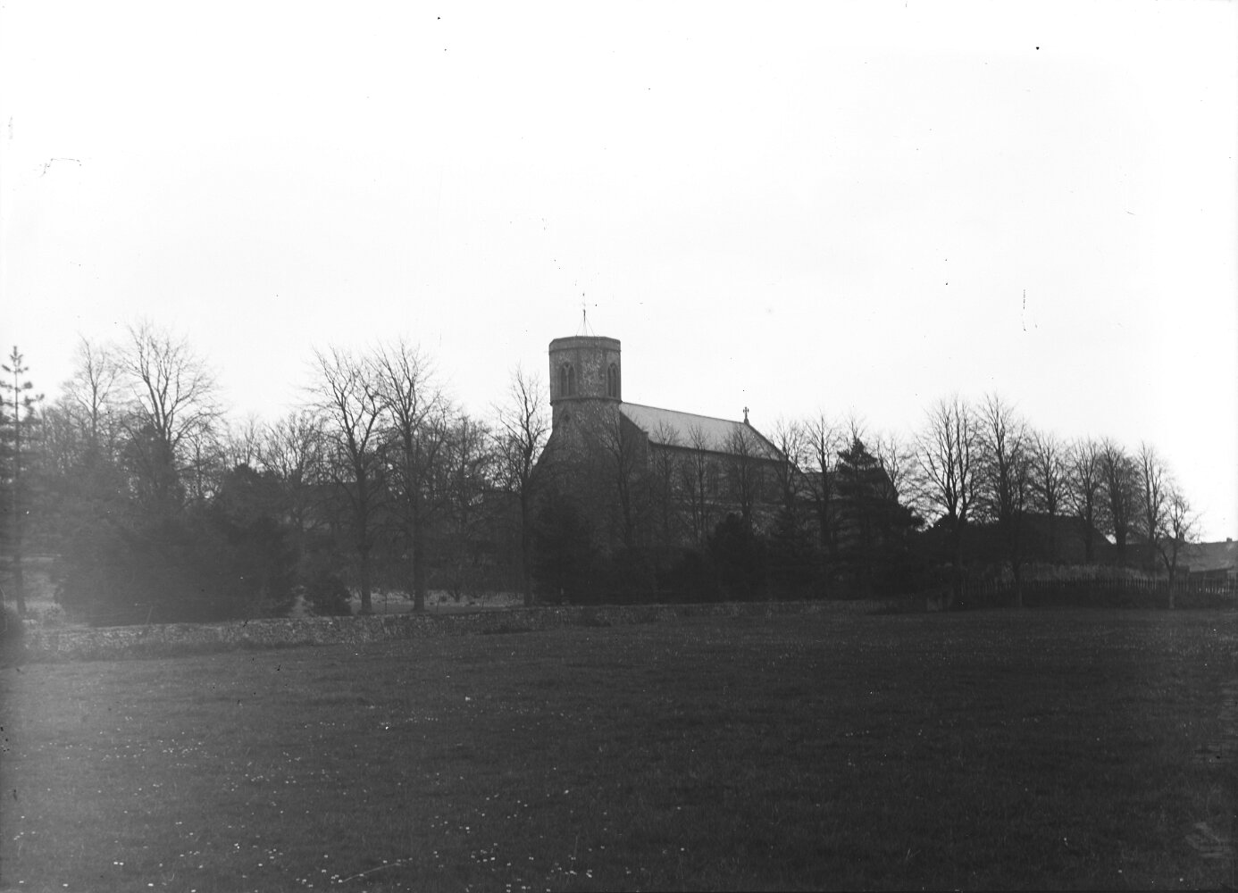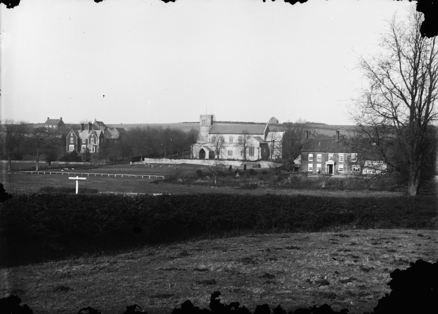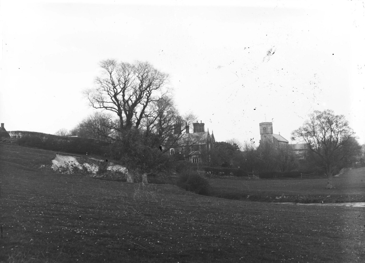 Taken from SE above Chalkpit beside Shernborne Hill track - Hill Farm and barns - Brookdale House - Vicarage - Sedgeford (St.Mary's) church