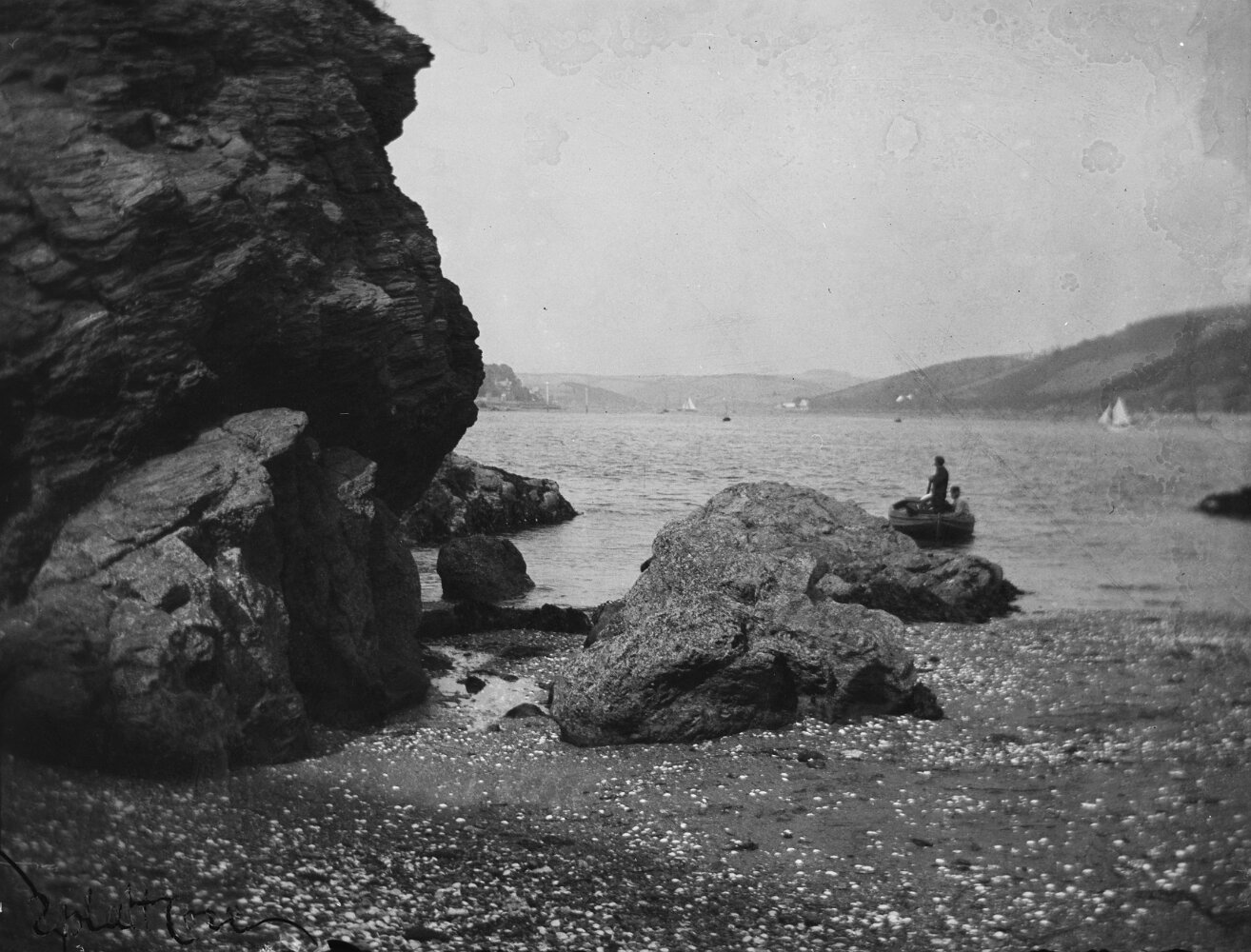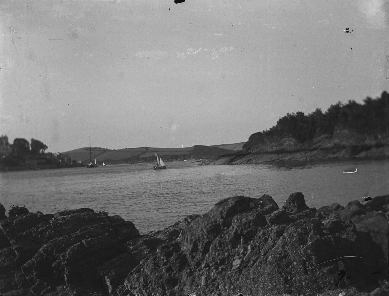 Splat Cove (partially written in bottom LH corner) looking up estuary toward Salcombe