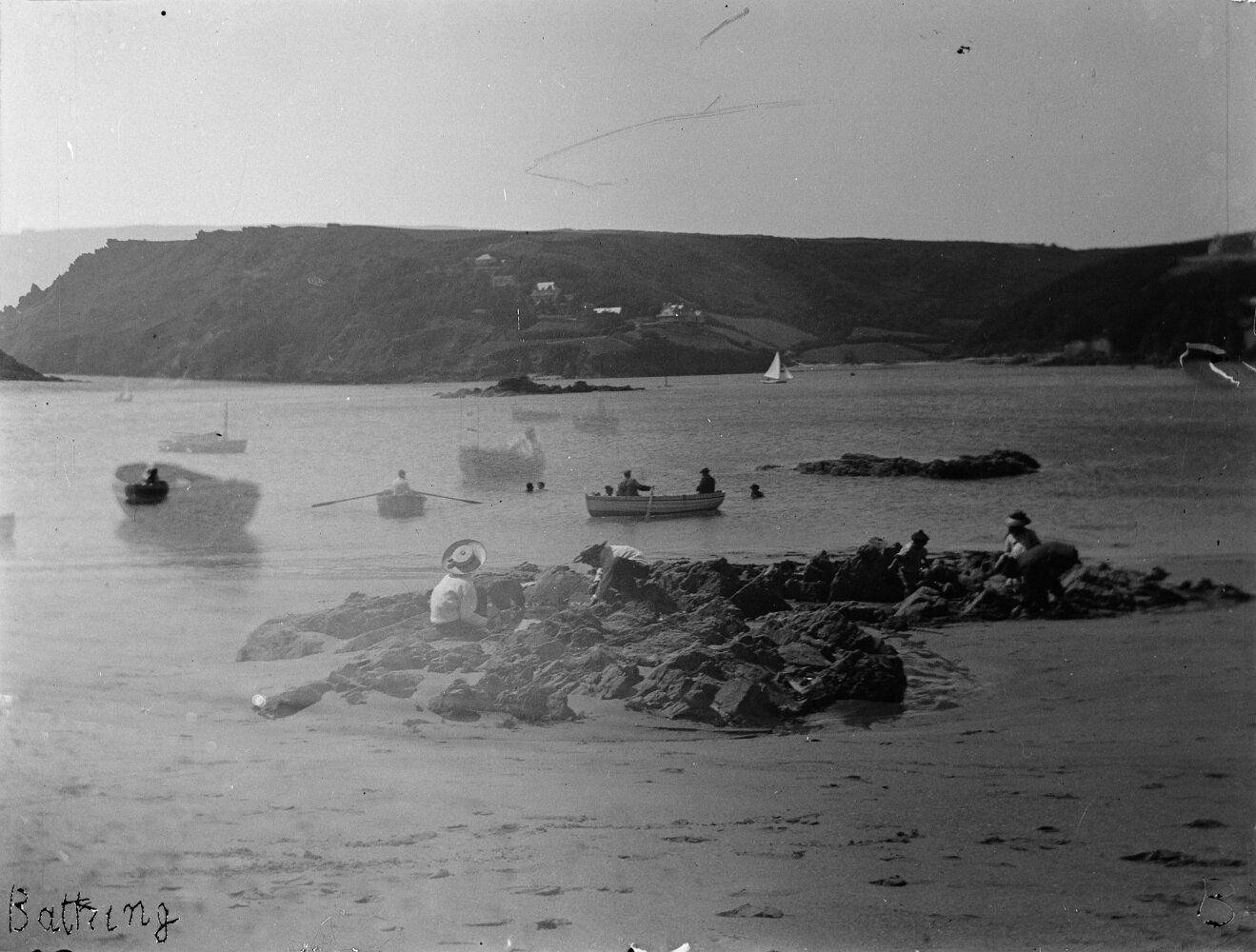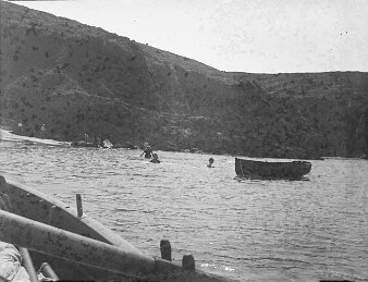 Scene of fishing boats and swimmers